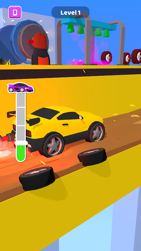 Il y a des roues neuves et rouillées sur la route. Vous devez vous procurer de nouvelles roues pour améliorer et faire évoluer votre véhicule. Conduire sur la plateforme surélevée peut changer les couleurs et les équipements de votre voiture. Attention à ne pas foncer sur les routes boueuses.