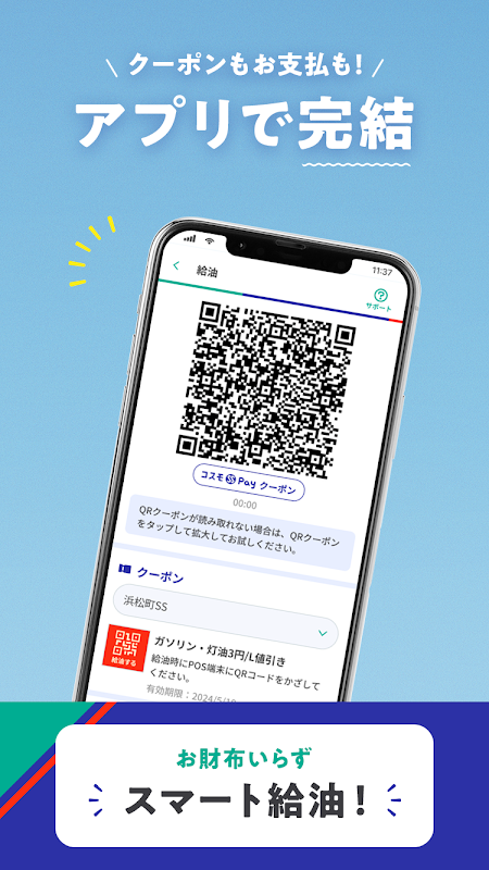 Si vous choisissez le paiement par application comme mode de paiement, vous pouvez effectuer le paiement en scannant simplement le code QR, et si vous disposez d'un coupon de ravitaillement, vous pouvez l'appliquer en même temps.