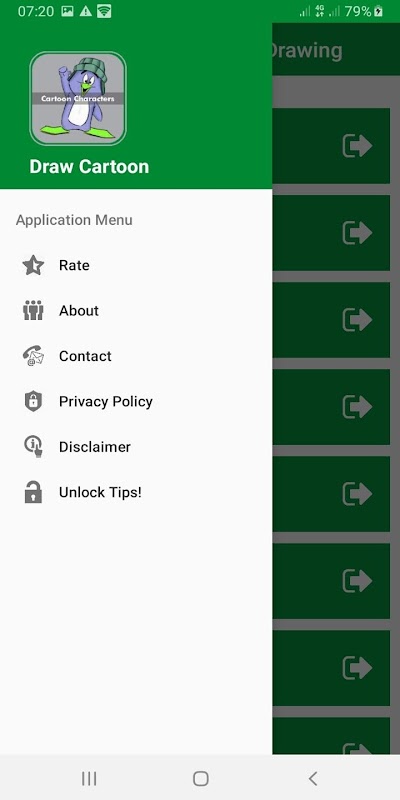 Cette application vous guidera pour apprendre étape par étape un tutoriel de dessin de personnages de dessins animés simples. La liste des fonctionnalités que vous pouvez trouver sur cette application est :