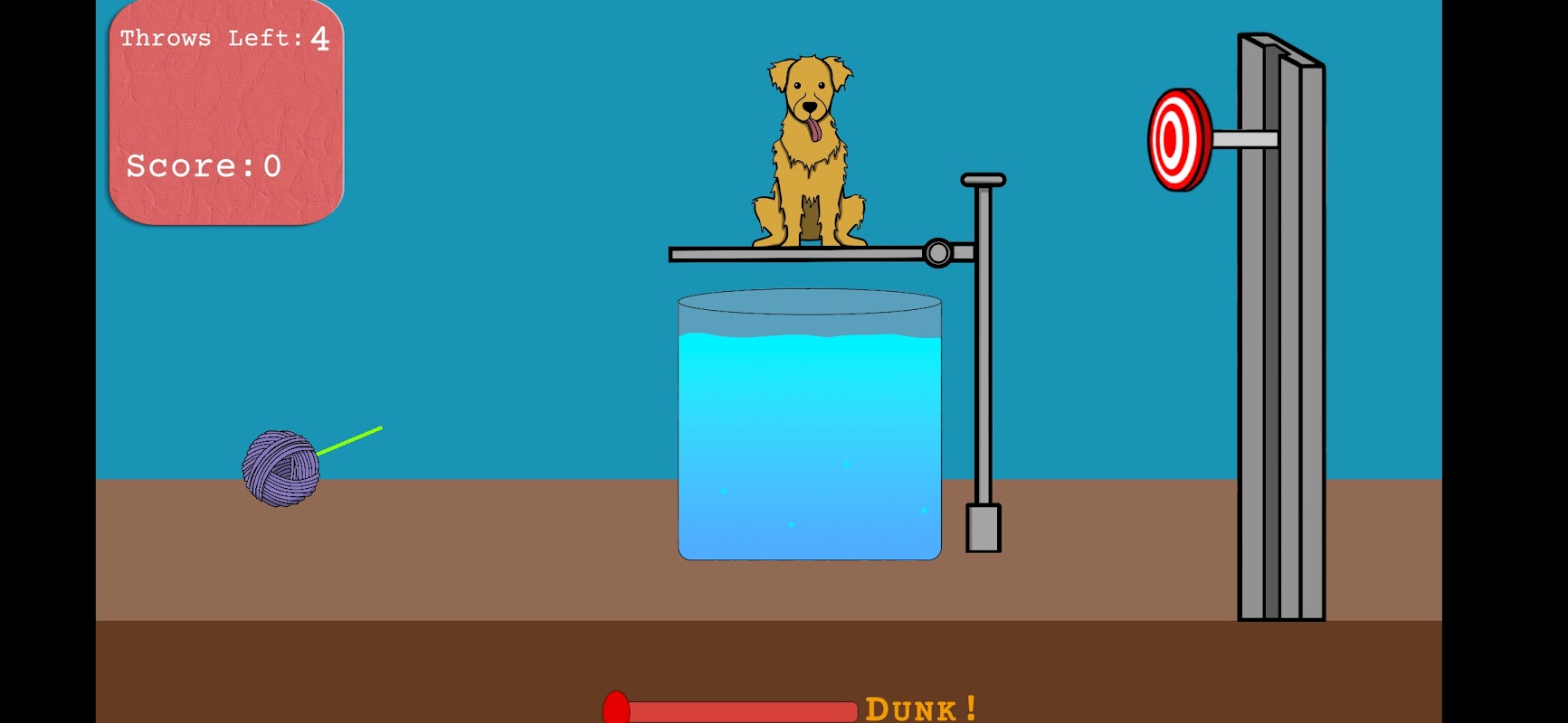 Cliquez et maintenez la pelote de laine pour viser avec votre souris et tenter d'atteindre la cible mobile. Lorsque la cible est touchée, la vitesse augmente. Touchez la cible sur les 5 niveaux pour dunk le chien !