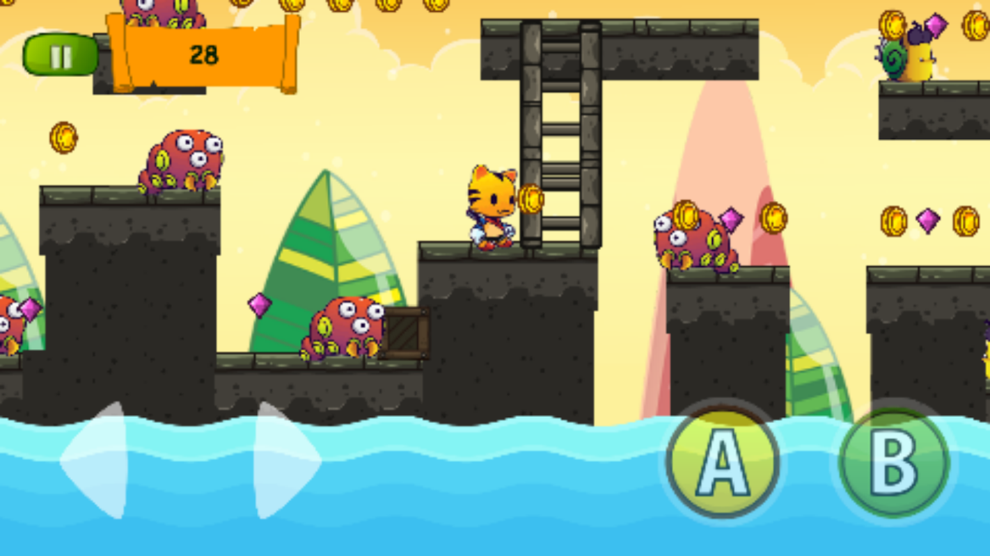 aidez le petit chaton à éliminer les monstres et à collecter toutes les pièces pour passer le niveau