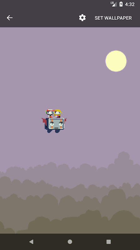 Il s'agit d'un fond d'écran animé de la scène Outer Wall du jeu vidéo Cave Story. Il présente vos personnages préférés de Cave Story volant à travers des nuages paisibles en mouvement sous un ciel éclairé par la lune.