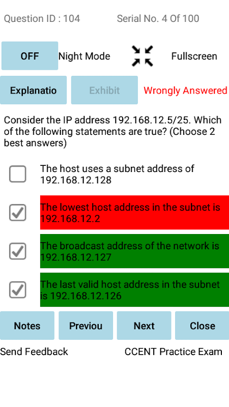 Review feature after taking simulated exam allows you to understand the incorrect answers and explanation for the question.
