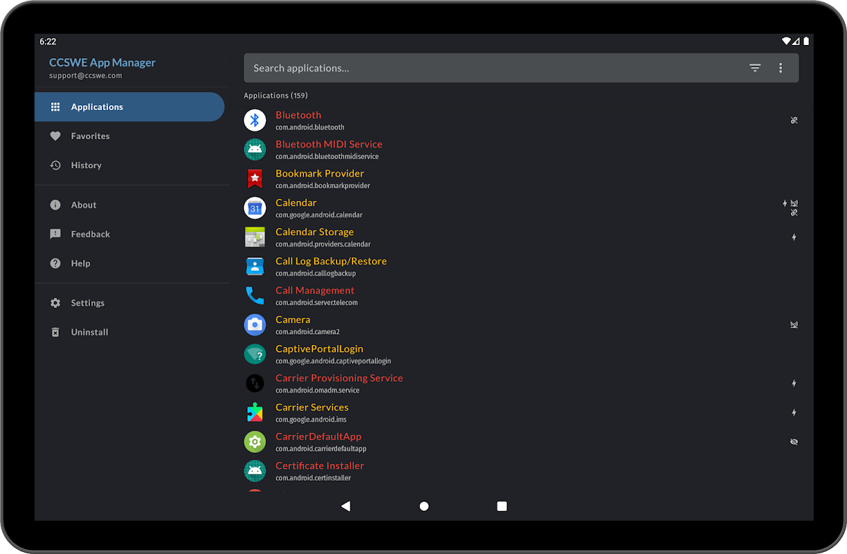CCSWE App Manager a été conçu pour les utilisateurs qui souhaitent désactiver des applications et des packages pour améliorer les performances. Il vous permet également de masquer les icônes des applications qu'ils n'utilisent pas sans désinstaller l'ensemble de l'application. Vous pouvez également masquer les icônes des applications système de stock, ce qui vous permettra de continuer à recevoir les mises à jour du système tout en économisant de l'espace dans votre tiroir d'applications.