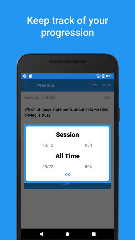 2. Mode examen - 60 minutes pour répondre à 50 questions choisies au hasard, ou 40 minutes pour répondre à 20 à 30 questions sur des sujets d'approbation. À la fin, passez en revue votre score et toutes les réponses incorrectes.