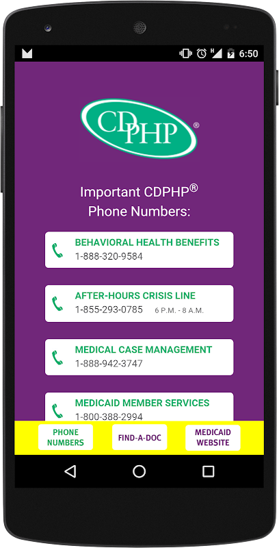 In addition, members can look for a doctor using the Find-A-Doc search tool and access the CDPHP Medicaid website – all with the tap of a button.