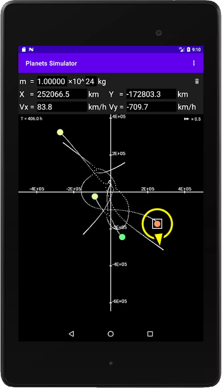 This app simulates planetary motion on the basis of Newton mechanics. Let's place planets as you like, and observe movement !