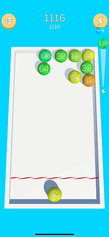 An excellent puzzle with moving balls. Your task is to combine balls with the same numbers. Get the largest number. 1024, 2048, 4096 ...
