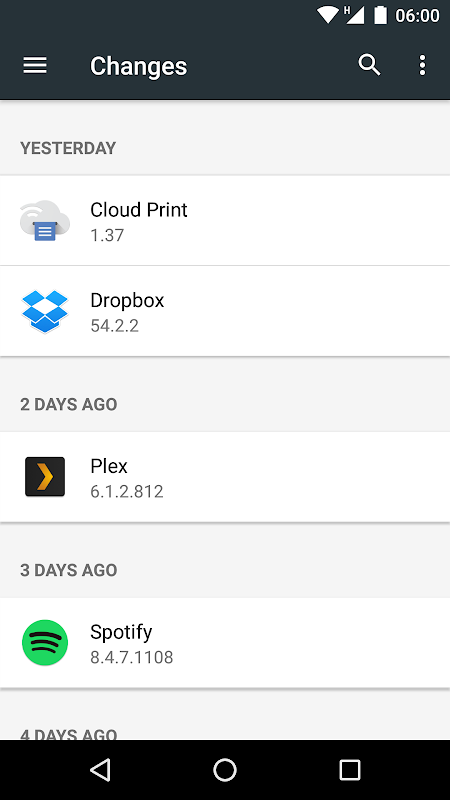 Changements vous permet de garder une trace des mises à jour de l'application et de leurs changelogs.