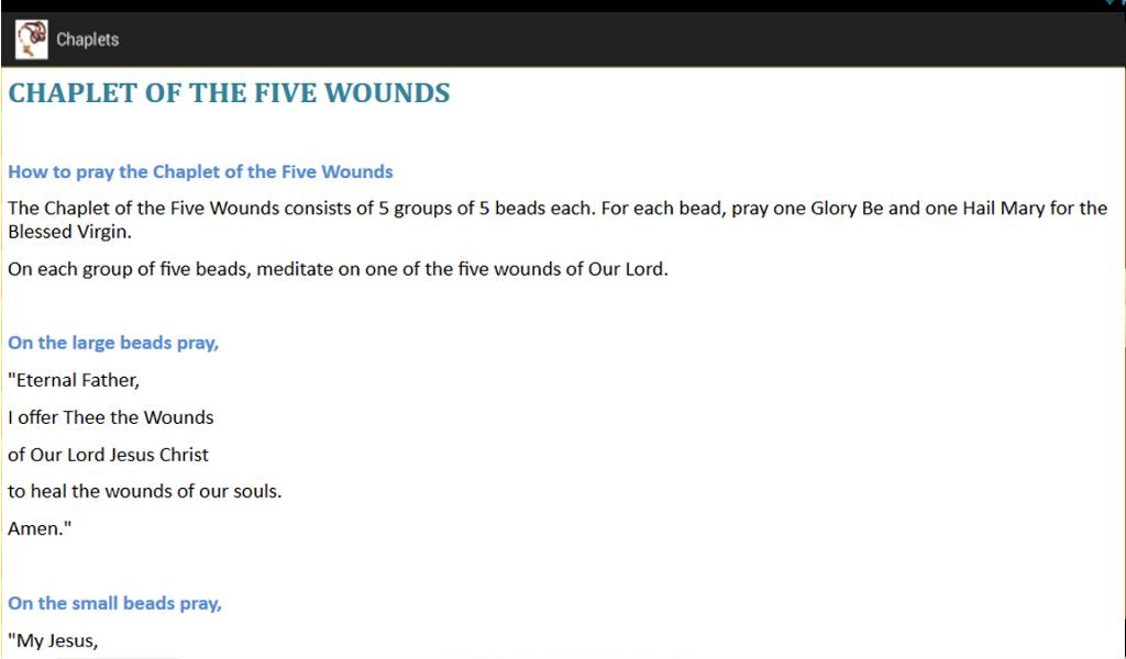 Ceci est une application android de chapelets catholiques qui contient les prières suivantes: