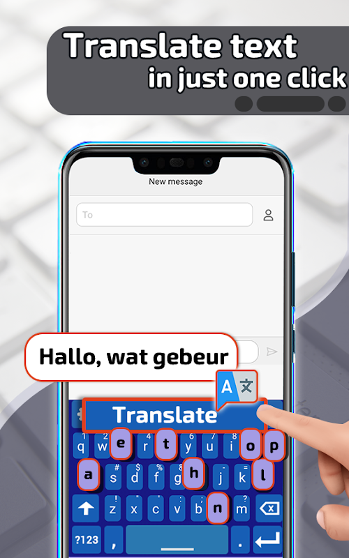 Text and chat translator keyboard has all English alphabets layout, where you can type text in English and then convert it to any other language. An easy keyboard input method with Translator keyboard that also offers you to Learn in all languages while chatting. You can also use text translator keyboard as a learner app, where you write something and get translation by pressing translate button.