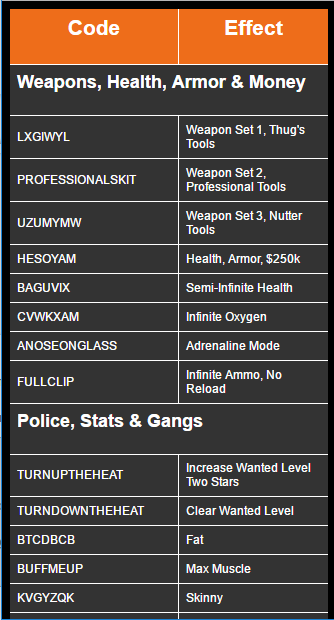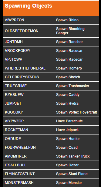 Keep an eye on this GTAForums thread for all the latest cheats.