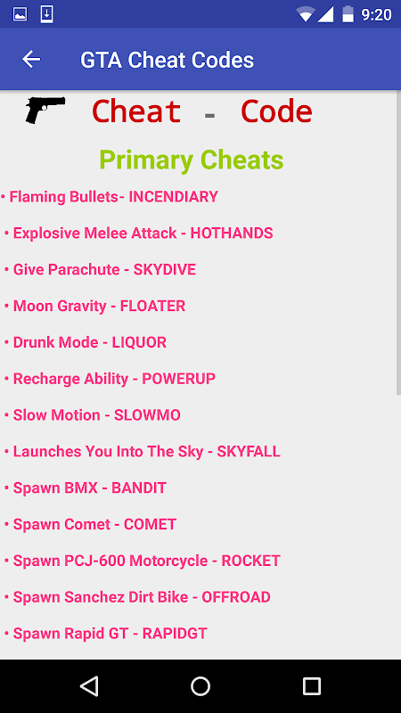 App pour Cheat Codes pour Grand Theft Auto V, et Grant Theft Auto San Andreas.