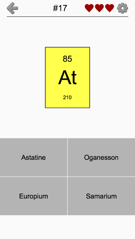 Identifiez tous les éléments, des métaux alcalins et des lanthanides (métaux des terres rares) aux métaux de transition et aux gaz rares. J'espère que cette application vous aidera à franchir une étape importante dans l'étude de la chimie générale et inorganique.