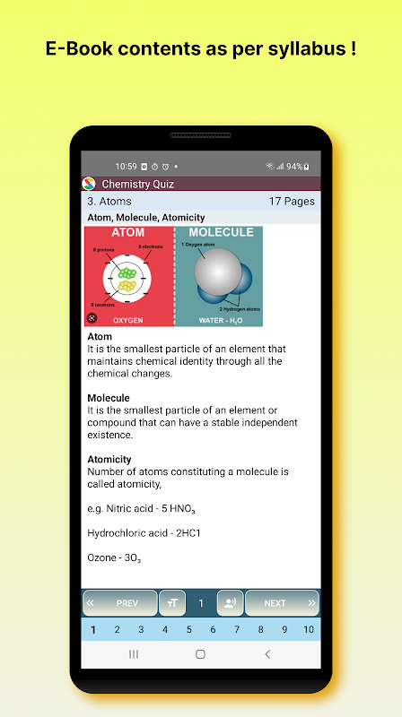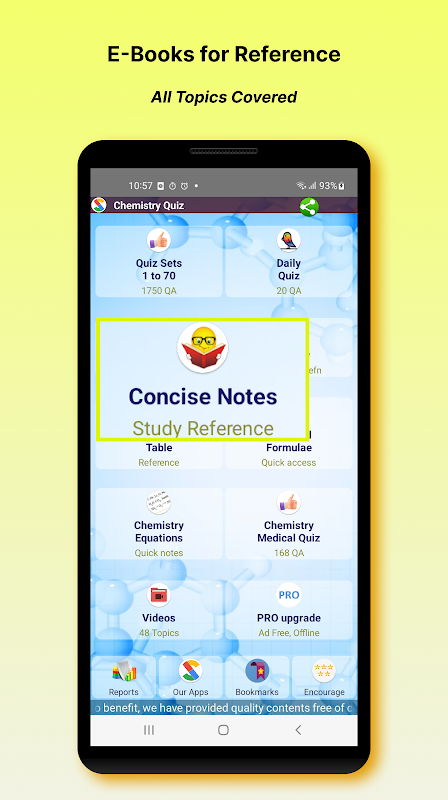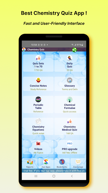 Une application de quiz simple et élégante qui allume vos connaissances en chimie et vous aide à vous auto-évaluer ainsi qu'à apprendre beaucoup de questions sur la chimie.