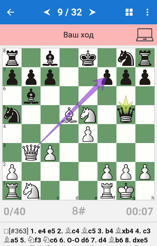 ♔ Vous pouvez jouer n'importe quelle position des exercices contre l'ordinateur.