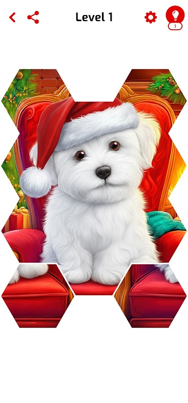 Lorsque le dernier hexagone s'emboîte, les pièces disparaissent et l'illustration de Noël complète apparaît dans des couleurs vives et harmonieuses : une satisfaction garantie à chaque fois.