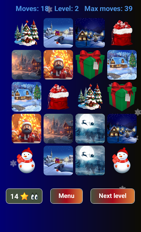 Jeu de mémoire sur le thème de Noël, choisissez un jeu simple ou un jeu à niveaux