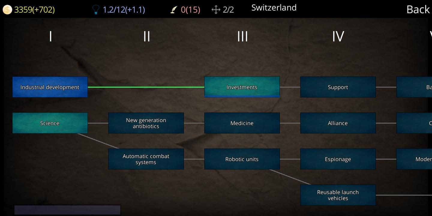 Civilization Path n'est pas seulement un jeu sur la guerre. Vous pouvez mettre vos armes de côté et vaincre avec l'aide de la science! Réacteurs thermonucléaires, armes nucléaires - les technologies sont différentes pour chaque scénario.