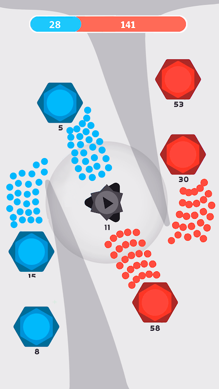Commencez un niveau en lançant une attaque de grande envergure ou poussez l'ennemi à gâcher des cellules en ouvrant les hostilités. Défendez vos points et ripostez pour prendre le contrôle des cellules épuisées. Il y a de nombreuses façons de gagner dans ce jeu de stratégie minimaliste.