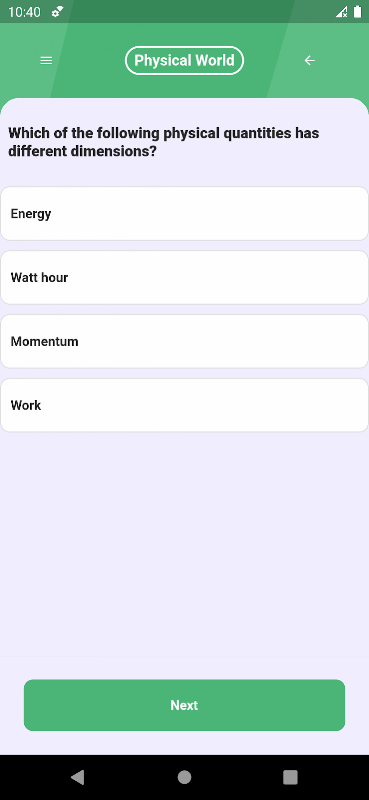 Notes complètes de physique de classe 11, questions pratiques et mode quiz.