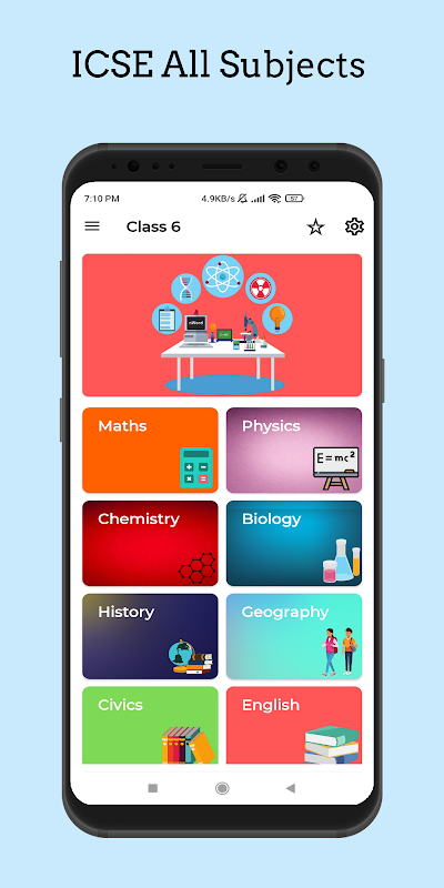 Dans cette application, l'interface utilisateur est très facile à utiliser pour tous les étudiants et comprend également tout le matériel utilisé dans la classe 6 ICSE.