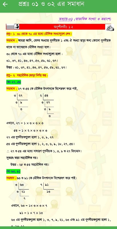 - প্রতি অনুশীলনীর প্রতিটি প্রশ্নের পৃথক/আলাদা সামাধান।