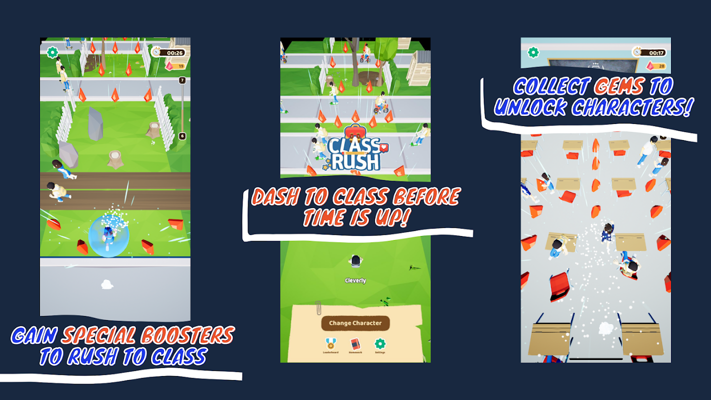 Mettez-vous au défi, vous et vos amis, de gagner le temps pour atteindre l'école le plus rapidement possible. Progressez depuis Kevin pour collecter des gemmes tout en vous précipitant vers l'école et débloquez l'élève le plus rapide, JianHao, l'élève vedette de Titan Academy.