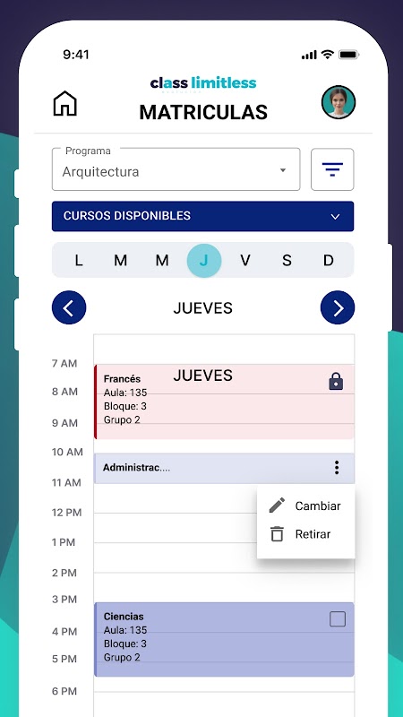 Accédez instantanément à vos informations institutionnelles et découvrez tout ce qui se passe dans votre classe, vous pouvez vérifier votre progression dans le plan d'étude, le calendrier des activités académiques et personnelles, signaler les absences, les retards, les notes, le processus d'inscription, consulter les soldes en attente, choisir le mode de paiement et ont également une messagerie privée.