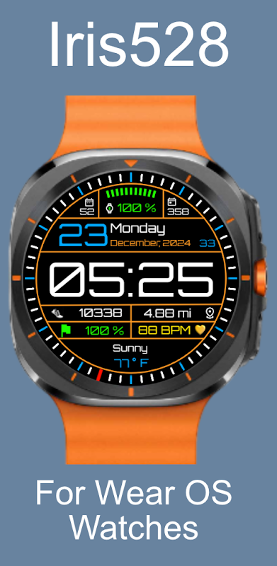 • Wear OS uniquement : le cadran de la montre Iris528 est spécialement conçu pour les appareils Wear OS.