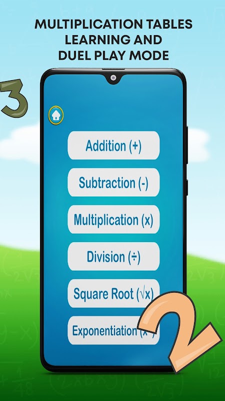 L'application Opérations mathématiques classiques propose différents modes de jeu pour améliorer les compétences en mathématiques : jouer, apprendre, quiz, s'entraîner, se battre et tester.