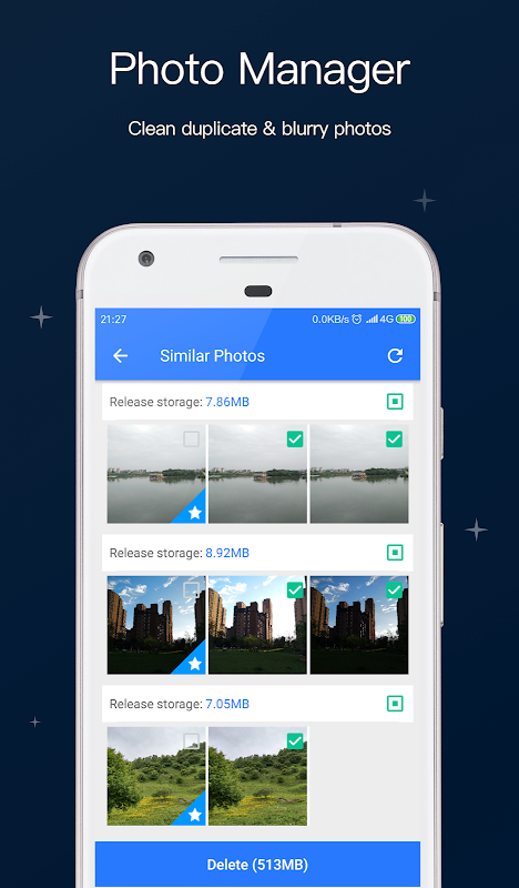 Cleaner peut analyser une galerie de photos et trier les photos similaires dans différents albums, trouver le meilleur à supprimer et libérer davantage de stockage.