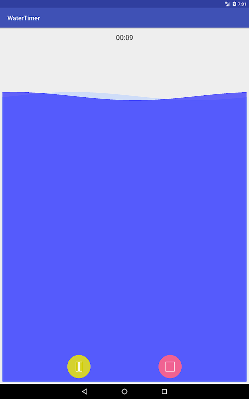 Minuteur visuel représenté par un niveau d'eau en mouvement qui baisse