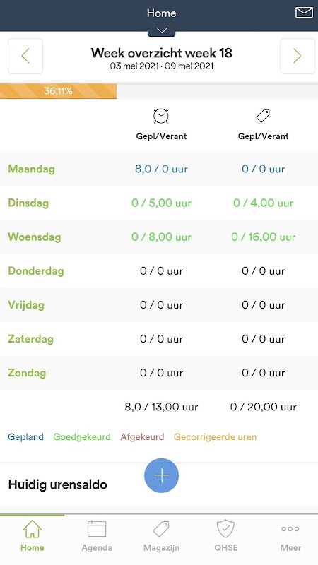 Vous pouvez désormais toujours voir vos heures actuelles et prévues à partir du tableau de bord. En choisissant les heures planifiées, vous entrez dans l'agenda. Lorsque vous entrez les heures actuelles, vous serez redirigé vers l'aperçu des heures. Vous pouvez maintenant voir dans votre calendrier si vous avez déjà pris en compte les heures planifiées.