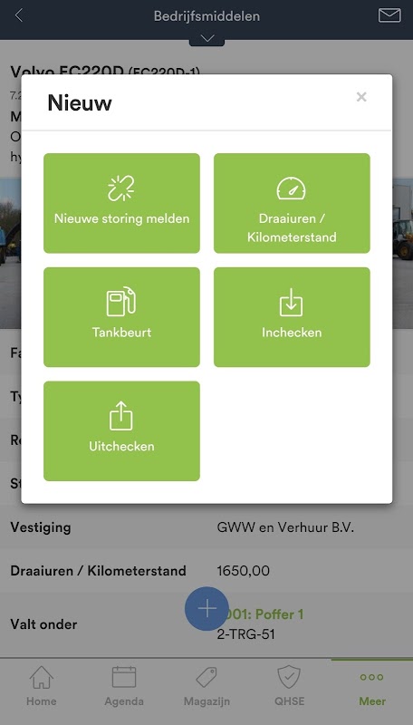 Il existe une carte détaillée des ressources de l'entreprise où le conducteur ou l'opérateur peut effectuer ses actions telles que les dysfonctionnements, le ravitaillement en carburant et la mise à jour des heures de fonctionnement / km. Cette carte détaillée offre de l'espace pour ajouter plus d'actions et d'informations telles que des inspections à l'avenir.