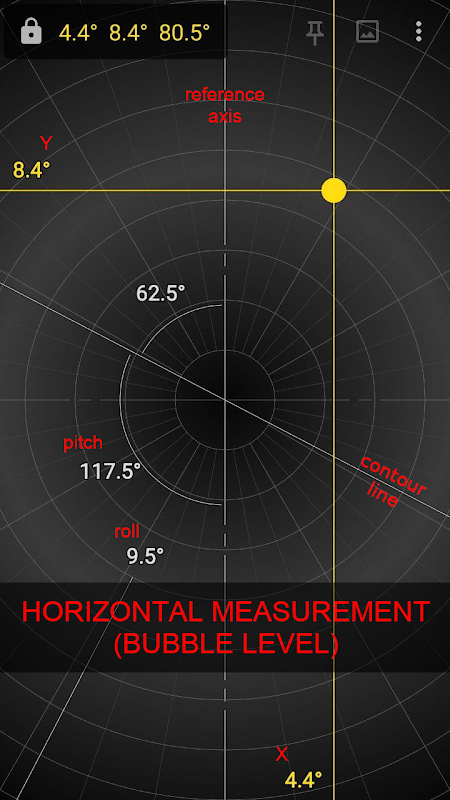 Il s'agit d'une application basique et légère avec des graphismes d'inspiration géométrique qui peuvent être utilisés comme clinomètre ou niveau à bulle.