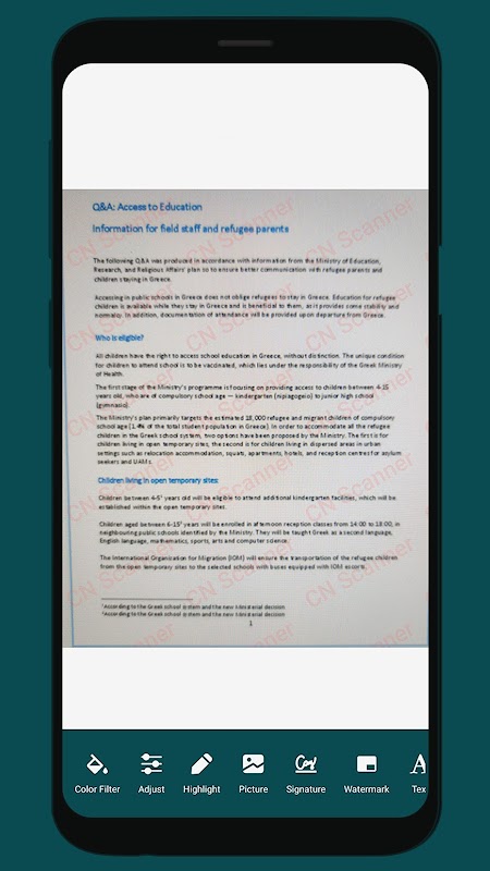 CN Scanner est un excellent outil pour numériser une variété de documents. Il s'agit d'une application de numérisation de documents PDF qui peut transformer votre téléphone en un scanner. Vous pouvez numériser n'importe quoi comme des photos, des documents, des reçus, etc.