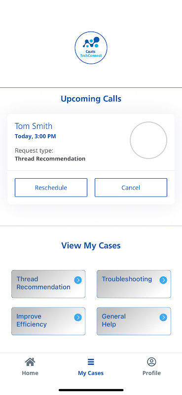 Coats TechConnect est le moyen le plus rapide de recevoir des conseils sur les fils de discussion et de résoudre les problèmes liés aux fils de discussion. Soumettez simplement un court formulaire et vous serez immédiatement mis en relation avec un conseiller en services techniques qui commencera à travailler sur votre demande. Les conseillers de Coats sont des experts leaders du secteur en matière de fil, de machines à coudre, de conformité, d'efficacité et de durabilité. Une fois votre demande soumise, vous pouvez discuter et planifier des appels vidéo avec votre conseiller en services techniques désigné. Les demandes restent ouvertes jusqu'à ce qu'elles soient résolues à votre satisfaction.