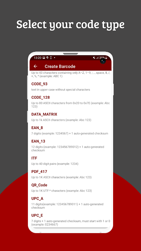 Stockez et partagez vos données sous forme de QR ou de code-barres. cette application peut créer les codes suivants :