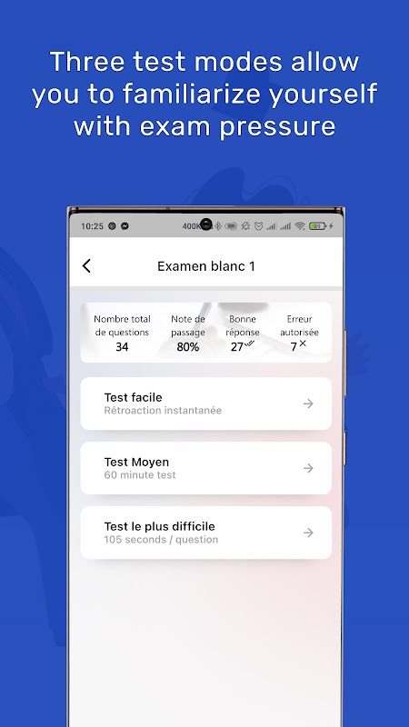 • De nouvelles questions à chaque fois: les questions sont randomisées chaque fois que vous recommencez un test pratique