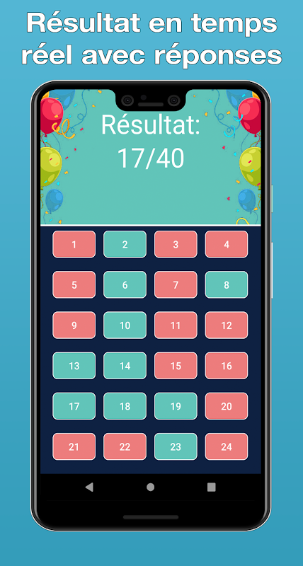•26 Séries de 40 Question différents de plus en plus difficiles à débloquer selon votre progression