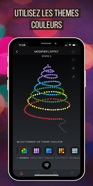 La guirlande intelligente Code Lumières utilise la technologie bluetooth ainsi qu'une application unique pour se connecter à votre smartphone, vous offrant ainsi la possibilité de contrôler des dizaines d'effectifs et des millions de couleurs.