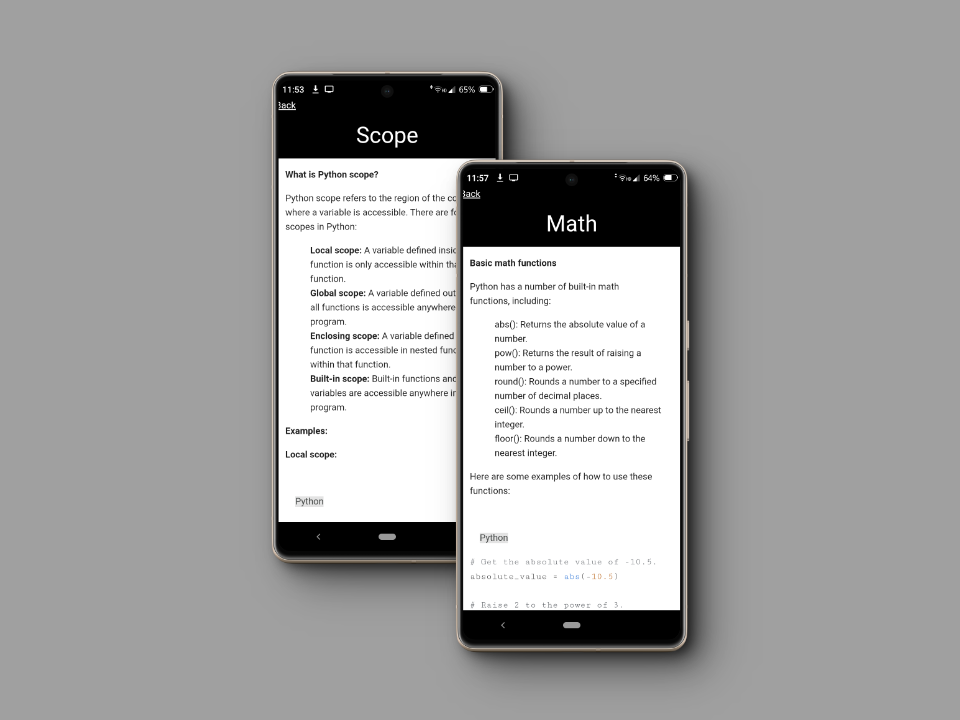 Codage interactif : apprenez en faisant ! Notre application propose des exercices de codage pratiques et des défis qui renforcent votre compréhension de Python. La pratique est la clé de la maîtrise.
