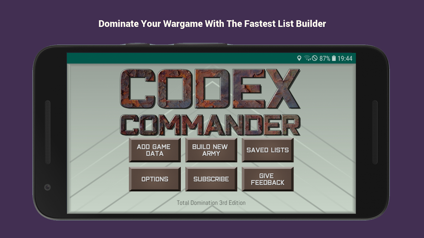 Commandant du Codex; l'application de création de liste la plus rapide et la plus fluide pour les wargamers de table miniatures.