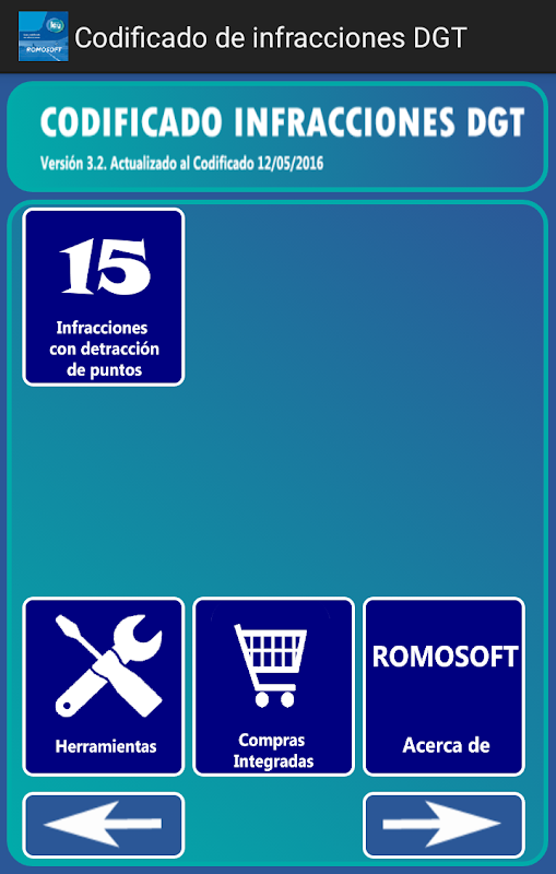 infractions DGT codées guide. Il contient les réformes les plus importantes de la Loi sur la sécurité routière. Décret-loi royal 6/2015 du 30 Octobre, approuvant le texte révisé de la loi sur la circulation, la circulation des véhicules à moteur et la sécurité routière approuvé. Cette application permet de voir les violations du trafic publiées dans le guide des infractions encodé publié par la Direction générale de la circulation. Affecte favoris violations les plus courantes ou habituelles. En outre utliza les mêmes couleurs pour violation de diverses lois et règlements pour le rendre plus facile à utiliser pour ceux qui sont familiers avec le guide de l'utilisateur.