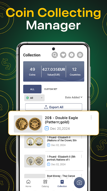 Estimate the value of coins in your collection with the Coin Value Checker feature, helping you make smarter buying, selling, and trading decisions based on real-time market data. Perfect for coin collecting, it gives you the insights you need to stay informed and maximize your collection’s value.