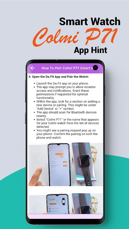 Cette application contient un guide pour la montre intelligente Colmi P71. Cette application est conçue pour les utilisateurs du Colmi P71.