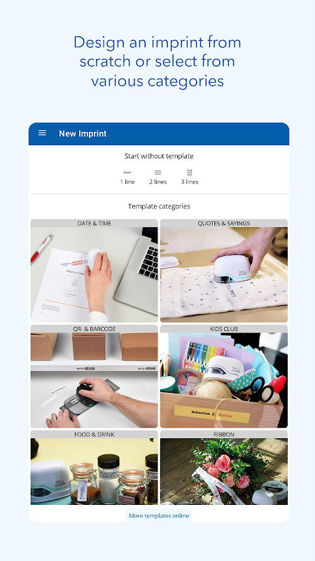 - Large gamme de modèles : utilisez les modèles de l'application à la fois pour des utilisations professionnelles et créatives ou trouvez encore plus de modèles gratuits sur notre site Web pour les charger directement dans l'application.