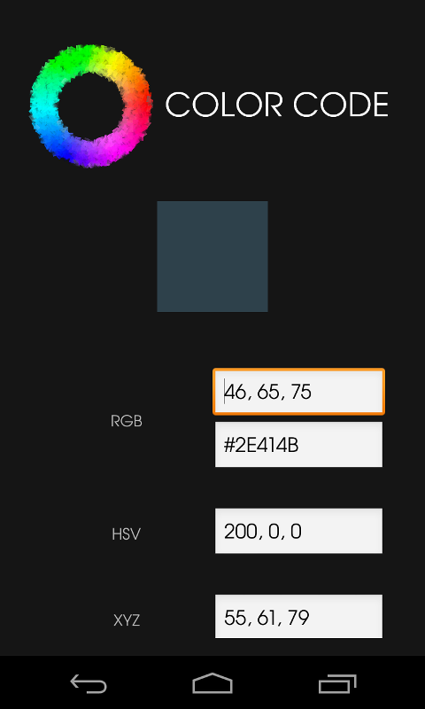 Code couleur vous permet de connaître le code de la couleur moyenne d'une image RVB, HSV et XYZ. Cette application vous permet de choisir l'image de la galerie ou prenez avec l'appareil photo de votre téléphone. Cette application vous permet également de parcourir les dix dernières couleurs que vous avez examinés.