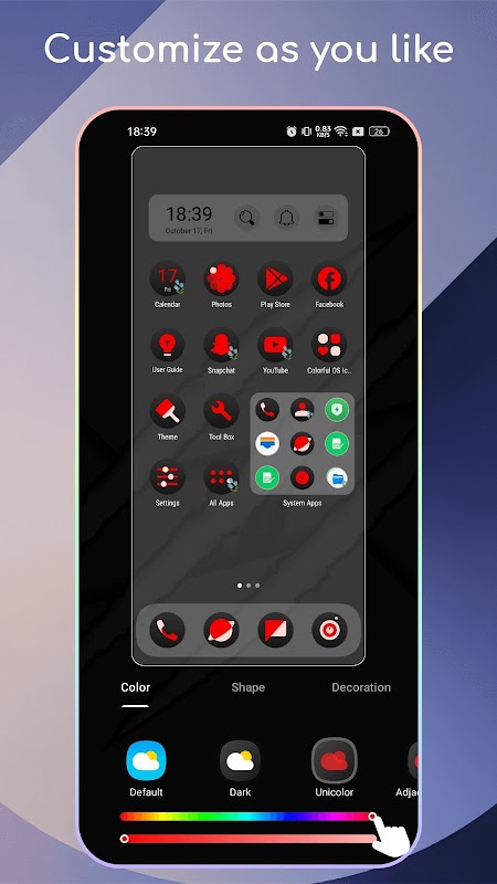 + Colorful OS Launcher a récemment ajouté la fonctionnalité Icônes colorées, vous pouvez personnaliser la couleur et la forme des icônes à votre guise, colorées et cool.